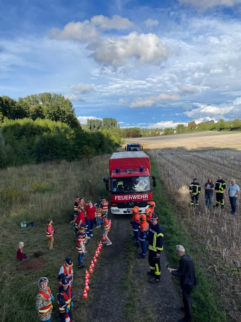 Am Montag den 01.09. rückte die Jugendfeuerwehr zur Unterstützung der Kinderfeuerwehr in die Eisbachrenaturierung in Ebertsheim aus. Dort galt es unter dem Motto der „Baumpflanzchallenge“ einen Einsatz abzuarbeiten. In einer nachgestellten Einsatzsituation wurde von den Mitgliedern der Feuerwehrjugend ein Baum gepflanzt. Herr Schwarz hat die Aktion mit der Kamera begleitet. Den Film dazu könnt ihr demnächst hier auf der Homepage bewundern.